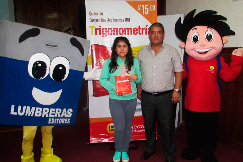Tres alumnos, en esta oportunidad de las academias ADUNI y César Vallejo de la sede de Bolivia, se llevaron un ejemplar del libro de Trigonometría de la Colección Compendios Académicos, luego de participar en el sorteo que puso punto final a la presentación.
