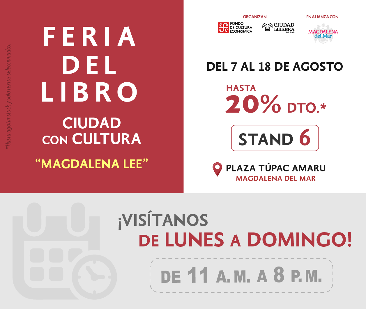 El Fondo de Cultura Económica Perú y Ciudad Librera, en alianza con la Municipalidad de Magdalena del Mar, organizan la feria del libro Ciudad con Cultura «Magdalena Lee», esta feria no solo busca promover la lectura en grandes y chicos, sino que además ofrecerá un rico programa cultural para celebrar en familia el Día del Niño.