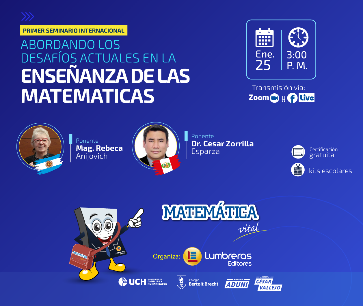 Este evento fue completamente gratuito y se llevó a cabo de manera virtual el día 25 de enero del presente año, mediante transmisión en vivo por Facebook Live en https://www.facebook.com/lumbreraseditores.escolar y por Zoom. Además, se entregará una certificación por 12 horas pedagógicas.