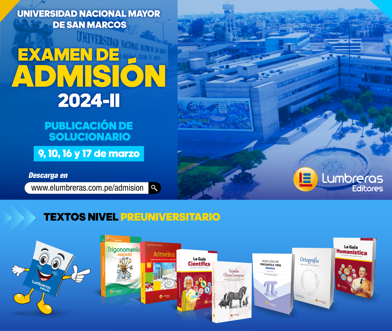 Lumbreras Editores reitera su compromiso con la educación peruana y desea a todos los postulantes el mayor de los éxitos en el proceso de admisión 2024-II de la UNMSM.
