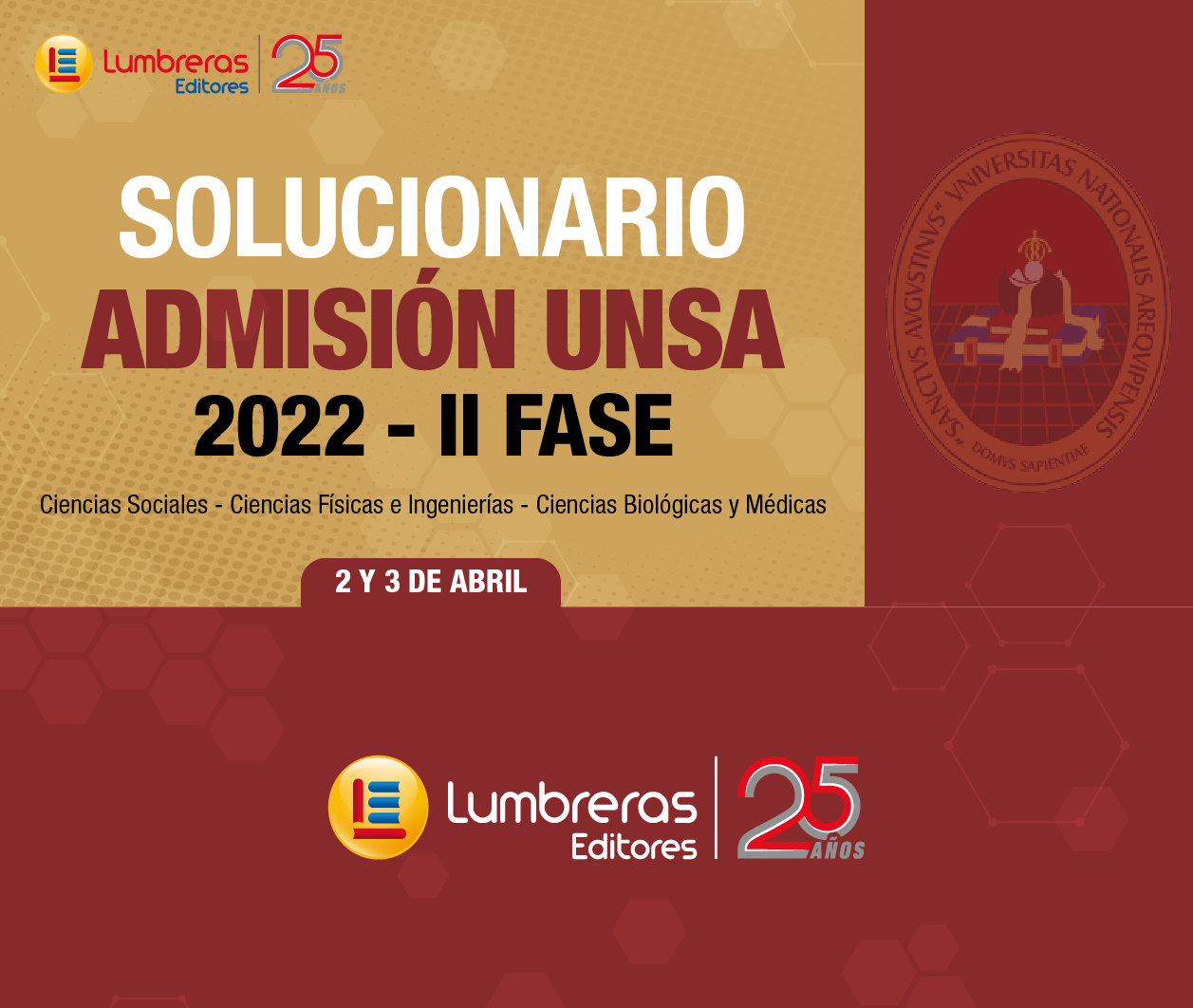 Siguiendo estrictos protocolos de bioseguridad, cientos de jóvenes se presentarán a la Universidad Nacional San Agustín de Arequipa (UNSA) para participar de las dos fechas del examen de admisión presencial 2022 – II Fase; por ello, Lumbreras Editores presentará y compartirá de manera gratuita los solucionarios correspondientes de sus áreas académicas para responder a la necesidad de los estudiantes de conocer la estructura del examen y las respuestas correctas con su desarrollo sustentado.