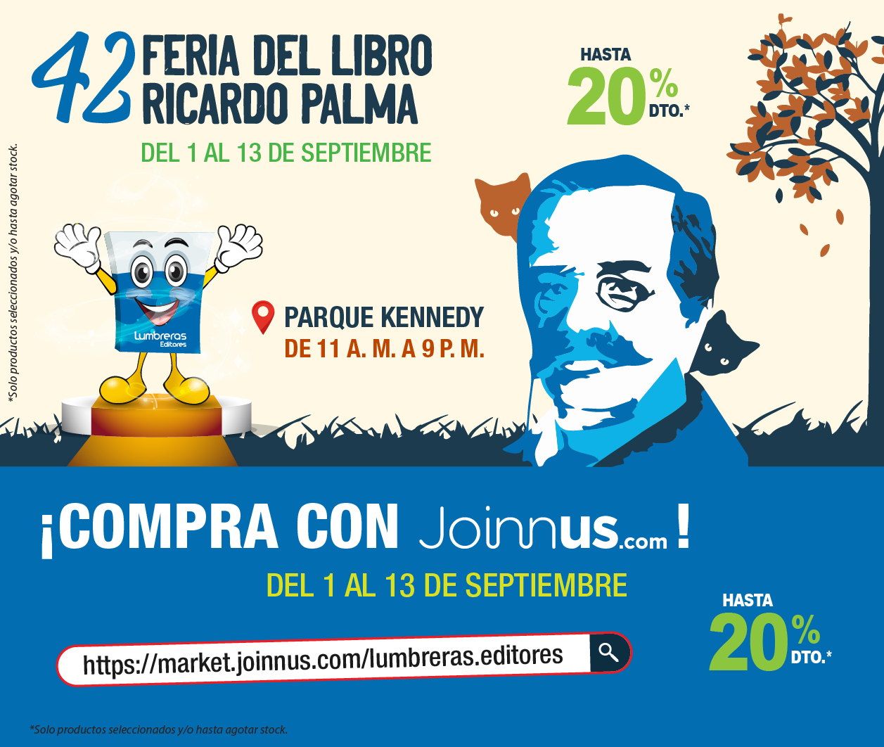 En esta oportunidad, Lumbreras Editores estará presente con su propuesta editorial preuniversitaria, la cual abre las puertas a la oportunidad de un futuro profesional. Entre estos textos tenemos la Colección Esencial, que está dirigida a estudiantes que inician su preparación académica desde un nivel básico, por eso, está estructurada de forma dinámica y gradual; la Colección Ciencias y Humanidades, con un mayor nivel de complejidad y que busca afianzar con un amplio marco teórico los conocimientos adquiridos; la Colección Compendios Académicos, que ayudará a estudiantes que precisan reforzar de forma resumida y didáctica los temas que vienen con mayor frecuencia en los exámenes de admisión de las principales universidades del país; la Serie Académica, que sirve como un como un banco de preguntas agrupadas por nivel y por temas; entre otras. También encontrarás la propuesta escolar Matemática Vital, la cual basa su enseñanza a partir de la matemática realista al aplicar los conocimientos adquiridos a situaciones de la vida cotidiana para los niveles primaria y secundaria; y los textos del Fondo UCH. Además, ofrecemos un descuento especial de hasta 20 % y una mesa de ofertas con textos seleccionados desde S/5.